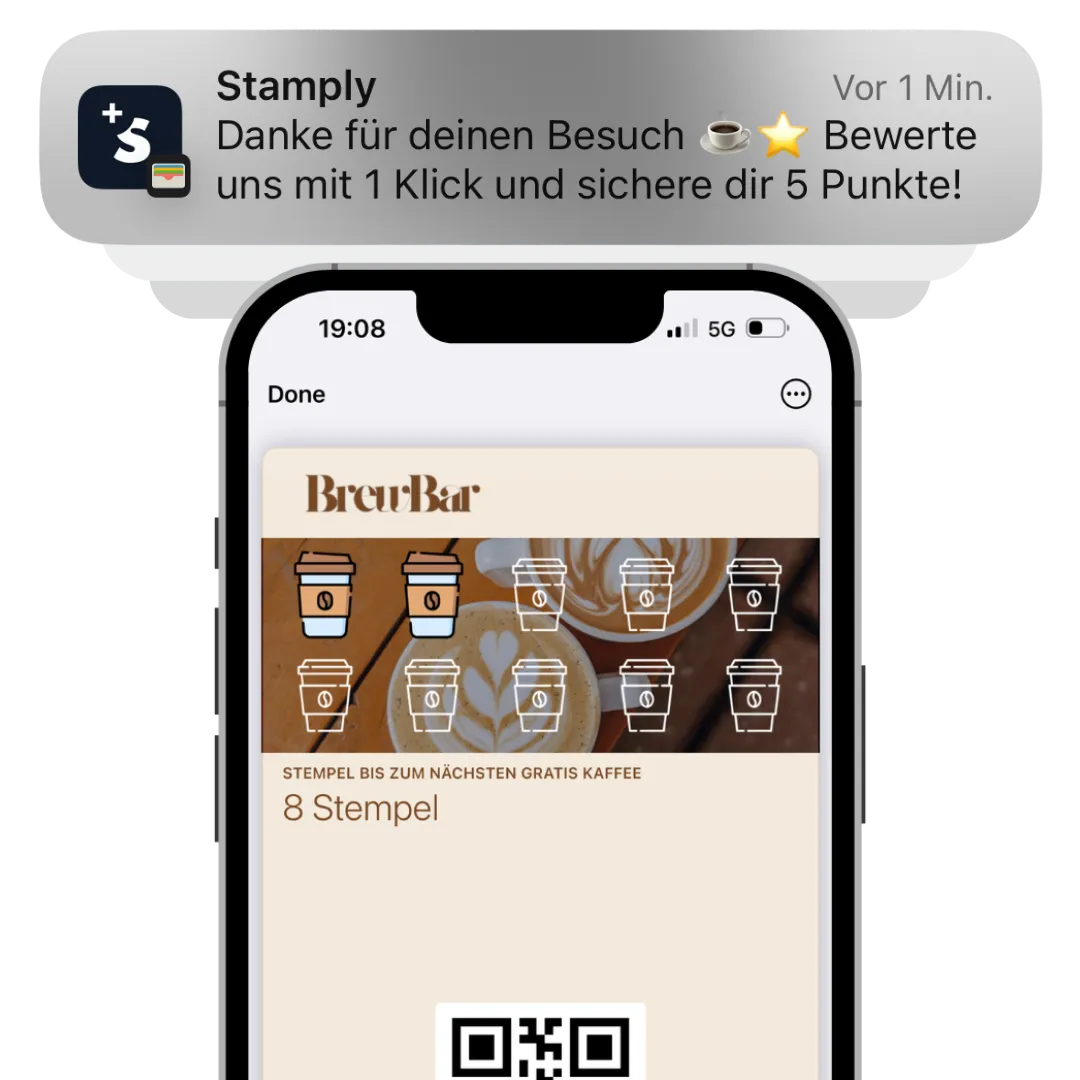 Mehr wiederkehrende Kunden, höhere Umsätze und eine moderne Lösung, die Papierkarten ersetzt. Zusätzlich kannst du Aktionen, Prämien und Push-Erinnerungen nutzen, um Kund*innen noch öfter zurückzuholen.