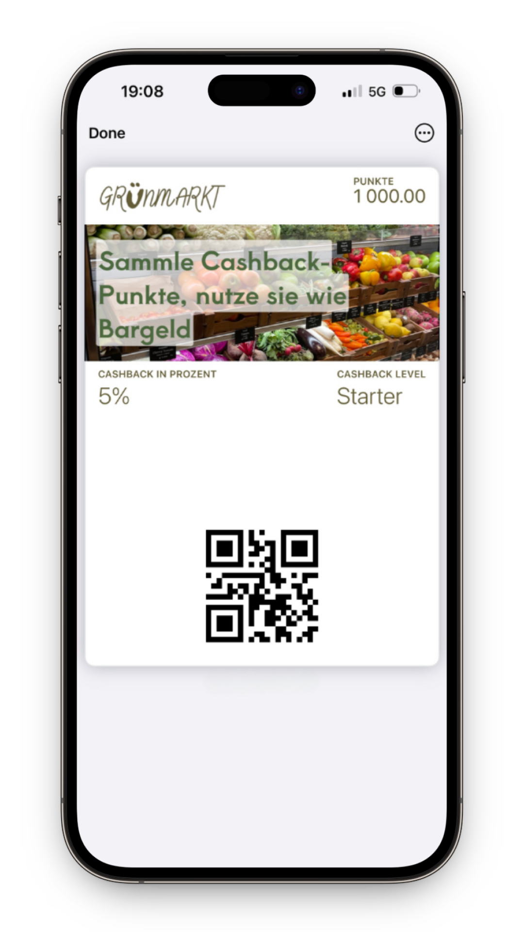 Ein Scan genügt und die Karte bleibt dauerhaft im Wallet deiner Kunden.