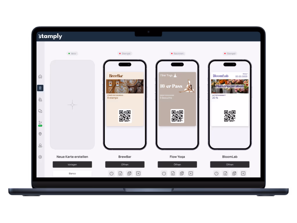 Erstelle deine erste digitale Stempelkarte und bring deine besten Kunden zum Wiederkommen.